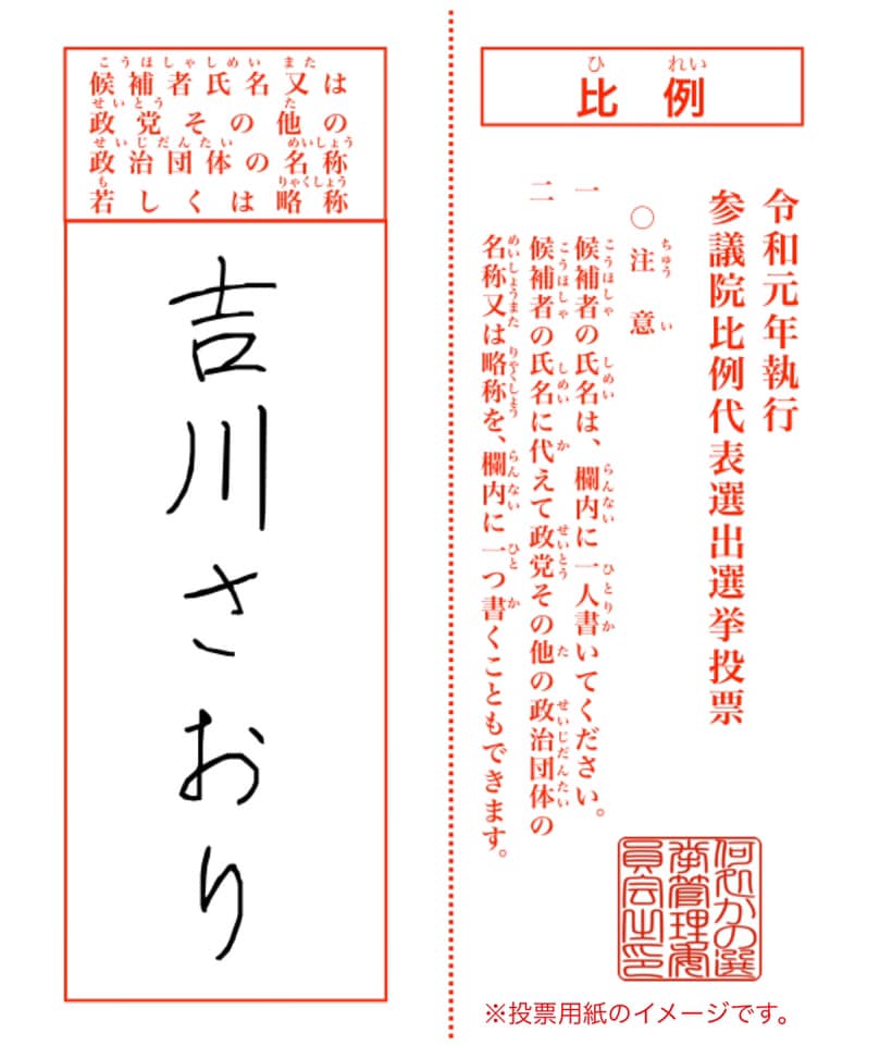 ぜひ「吉川さおり」と個人名の記入をお願い