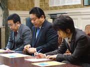 枝野幹事長、羽田企業団体対策委員長とともに、連合の