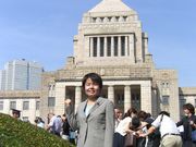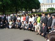 正門前にて新人集合、議事堂前にて