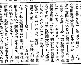 バカヤロー解散のきっかけとなった衆議院予算委員会の会議録ですが、発言内容は削除され、発言があった事実のみ棒線によって残されています。棒線削除といいます。